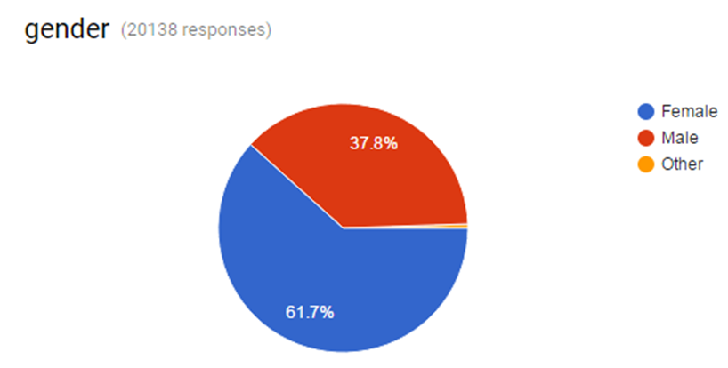 There are more responses from people aged 25-34 than other age groups, as well as more responses from women (these graphics based on responses up to Nov 24th – check the summary charts for updates).